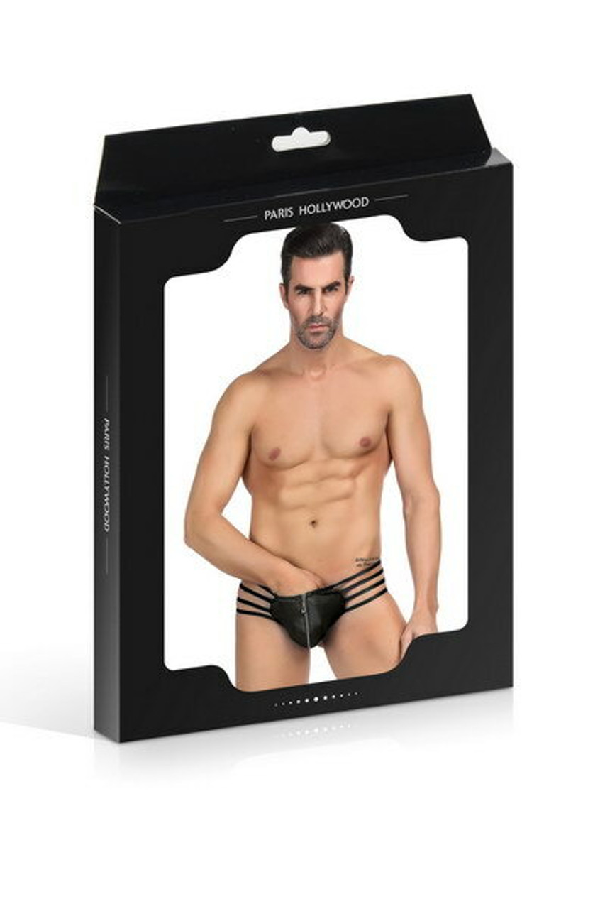 This black thong is with ornamental elastic straps that surround the hips to end in one and form this very beautiful thong.