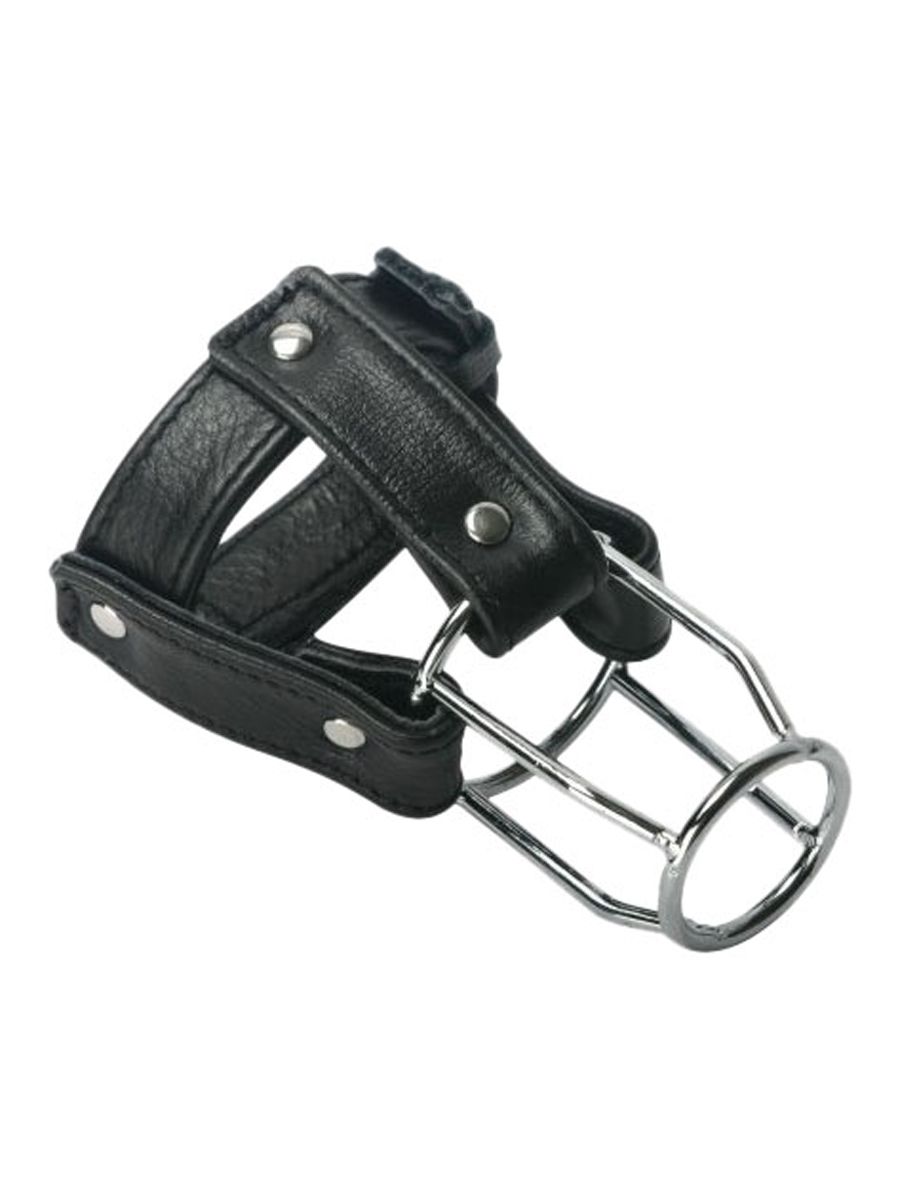 Put your man on lock down with this great chastity device! Made to be functional and inexpensive, this device will encase his penis in a metal cage. For a secure fit, the locking leather cock ring at the base of the device is adjustable.