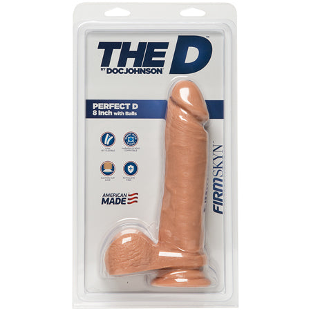 Now available in FIRMSKYN, the Perfect D is molded directly from a real erect penis for an incredibly lifelike look with a new firmer feel. Realistic veins and plush, flexible balls complete the experience. Suction cup base. O-ring harness compatible. Made in the USA.