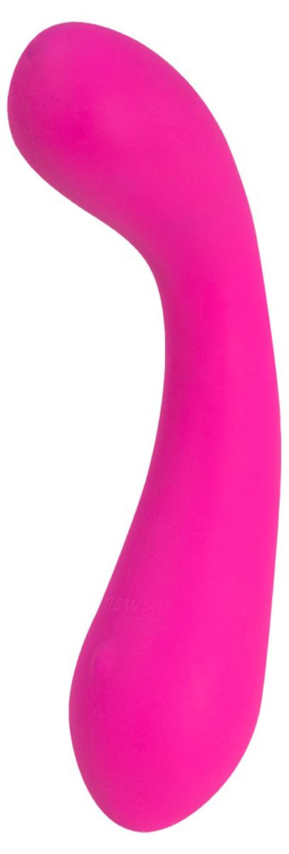 Curved, pink G-spot vibrator. The vibrations are controlled by squeezing the vibrator. Personalised vibration patterns can be created and saved as well. Soft and flexible. Waterproof. Includes an elegant storage bag. Rechargeable with the included USB cable. Charging time: 3 hours, battery life: 2 hours. Length 16.2 cm, Ø 3.3-3.8 cm. Material: silicone, phthalate-free according to EU Regulation REACH.
