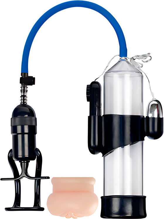 With the vaginal opening, the pump turns into a sucking masturbation toy. It also includes a small vibrator that provides extra stimulation and pleasure. A housing holds the vibrator and wired control in place on the cylinder. Turn the wheel to increase and decrease the vibration strength.