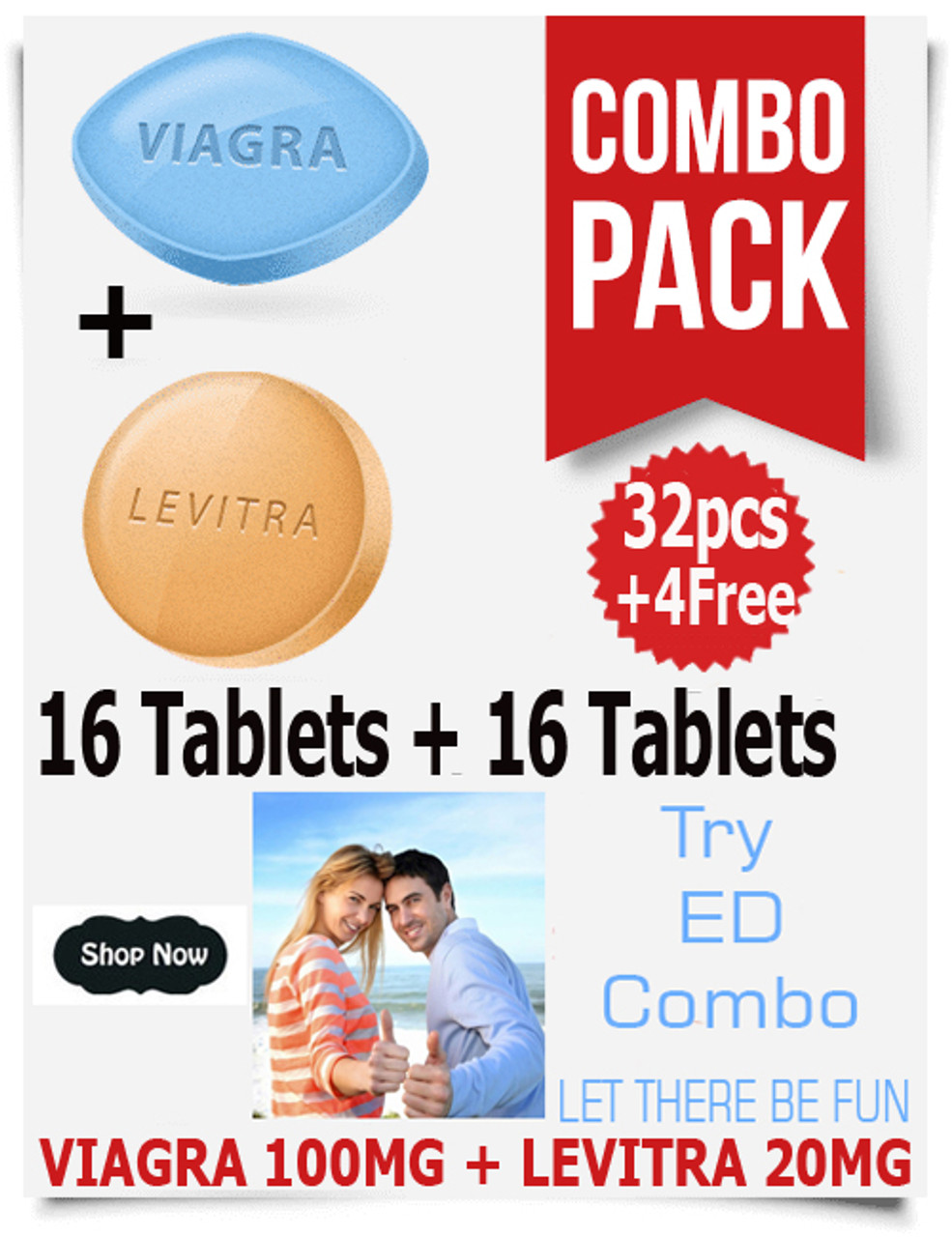 VIAGRA 100MG + LEVITRA 20MG COMBO PACK 16 + 16 32PCS +4 FREE