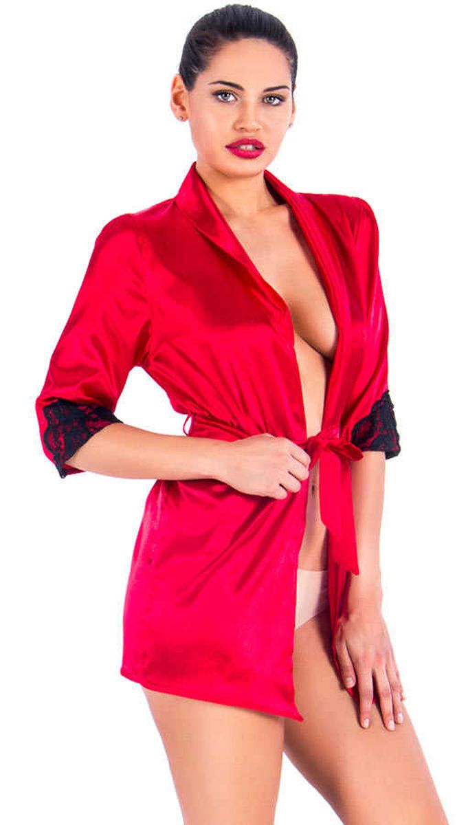 Feel sexy and confident in this beautiful shiny kimono from the Vixson collection! The soft and smooth fabric feels great on your skin and thanks to its loose fit, it is also very comfortable to wear. Tie the belt around your waist for a good fit. The sleeves are decorated with elegant black lace with floral design. This gives the kimono a very seductive look and makes it the perfect outfit for an exciting adventure in the bedroom.