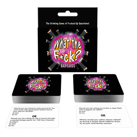 WTF? The What the Fuck? Bar Card game has two kinds of questions – Raunchy Questions and Totally Fucked Up Questions. Over 200 original questions for 2-100 players! Any questions? English.
