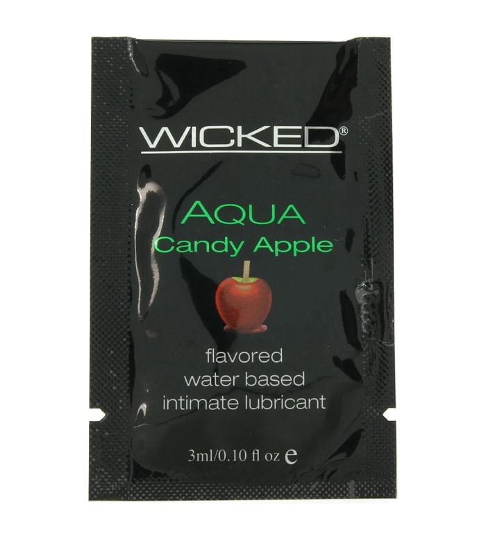 - Item: Wicked Sensual Care Aqua Flavored Lube .10oz/3ml in Candy Apple WICKED-904000