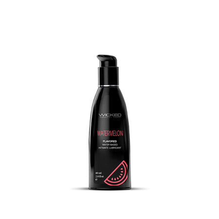 Bring summertime into your sex life! Kissable, lickable, and delicious, Wicked Aqua Watermelon personal lubricant adds subtle and delicious natural flavors to enhance oral pleasures. Light and silky, this water-based formula is the perfect sensual combination of an elegant lubricant and a flavor sensation. Never sticky and without an aftertaste, Wicked Aqua Watermelon satisfies your sweet tooth and your intimate desires all in one amazing pleasure product. Oral sex never tasted so good. Whether you are giving or receiving, our flavors will give you new sexy confidence.