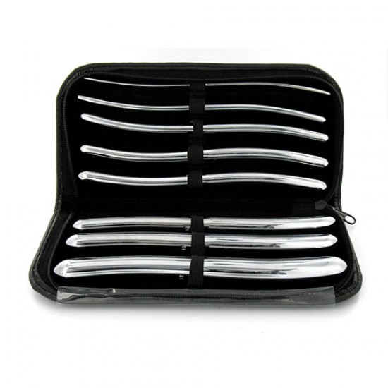 The Hegar Sound Set is a urethral dilator sound set with a full set of 8 sounds. Each sound has a different sized end, thus the set offers sixteen sizes, ranging from 3 French to 19 French. The purpose of this sound set is to gradually and gently enlarge the urethra, when inserted into the urethra for such dilation. The sounds can also be used in other areas other than the urethra, such as anally, vaginally or prostate. Each set comes in a zippered velvet-lined case for storage between each orgasmic session.