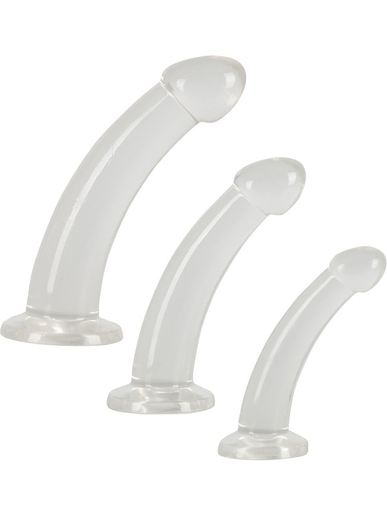 Anal Training Set contains three transparent anal-dildos in different sizes that allow you to train your anal ability or enjoy a varied intensity. Start with the smallest and work your way up when you feel ready for a little more stretch.